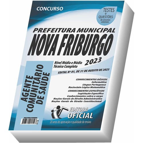 Cargo: Agente Comunitário de Saúde Tipo: IMPRESSA Páginas: 450 Escolaridade: NÍVEL MÉDIO E MÉDIO TÉCNICO Órgão: PREFEITURA MUNICIPAL DE NOVA FRIBURGO/RJ - EDITAL Nº 01, DE 31 DE AGOSTO DE 2023