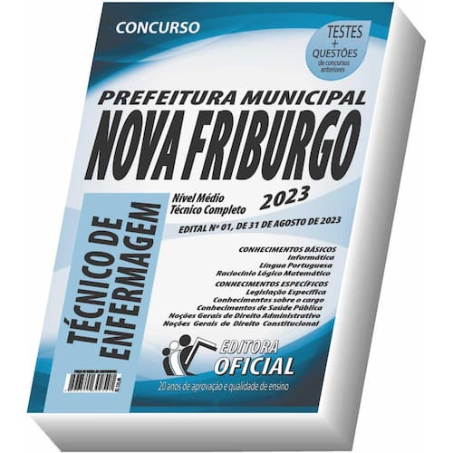 Cargo: Técnico de Enfermagem Tipo: IMPRESSA Páginas: 536 Escolaridade: NÍVEL MÉDIO E MÉDIO TÉCNICO Órgão: PREFEITURA MUNICIPAL DE NOVA FRIBURGO/RJ - EDITAL Nº 01, DE 31 DE AGOSTO DE 2023