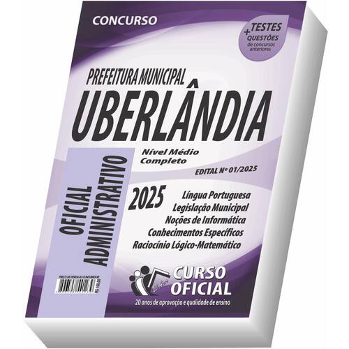 Edição impressa atualizada - elaborada por professores especializados em concursos públicos do curso oficial - são 25 anos de experiência e aprovação dedicados a você, . Cargo: oficial administrativo Tipo: impressa Páginas: 368 Escolaridade: nível médio Órgão: prefeitura municipal de uberlândia - edital nº 01/2025 Conteúdo do material: Língua portuguesa Legislação municipal Noções de informática Conhecimentos específicos Raciocínio lógico-matemático Você receberá ainda: Testes, provas e questões de concursos anteriores.