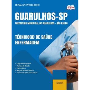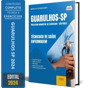 A Apostila Concurso Prefeitura de Guarulhos - SP 2025 - Técnico a de Saúde - Enfermagem contempla as seguintes matérias: Língua Portuguesa Política de Saúde Matemática Noções de Informática Conhecimentos Específicos