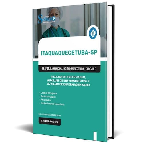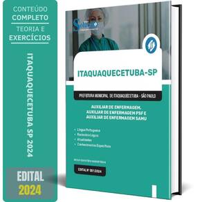 Apostila Prefeitura de Itaquaquecetuba SP 2024 - Auxiliar de Enfermagem, Auxiliar de Enfermagem PSF Apostila para Prefeitura de Itaquaquecetuba - SP 2024 para o cargo de Auxiliar de Enfermagem, Auxiliar de Enfermagem PSF e Auxiliar de Enfermagem SAMU