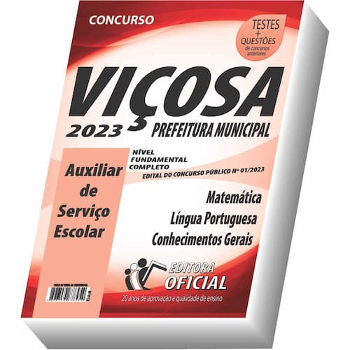 Cargo: Auxiliar de Serviço Escolar Tipo: IMPRESSA Páginas: 236 Escolaridade: Nível Fundamental Órgão: PREFEITURA MUNICIPAL DE VIÇOSA - EDITAL DO CONCURSO PÚBLICO Nº 01/2023