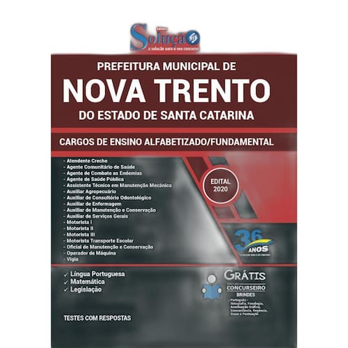 A Apostila Concurso Prefeitura de Nova Trento - SC 2020 - Ensino Alfabetizado/Fundamental contempla as seguintes matérias: