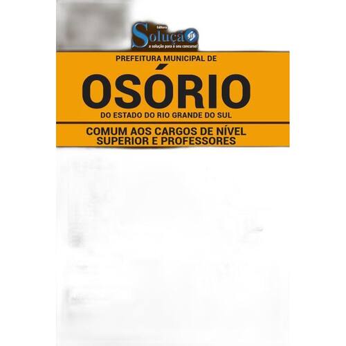 A Apostila para Comum aos Cargos de Nível Superior e Professores do concurso Prefeitura de Osório - RS 2020 foi rigorosamente elaborada conforme o edital, o que torna o seu conteúdo completo e atualizado. O conteúdo da Apostila e distribuído de forma interativa e simplificada, justamente para facilitar os seus estudos. Marca: Editora Solucao