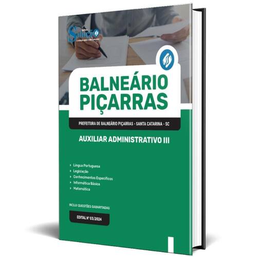 Apostila Prefeitura de Piçarras SC 2024 - Auxiliar Administrativo III Apostila para Prefeitura de Piçarras - SC 2024 para o cargo de Auxiliar Administrativo III
