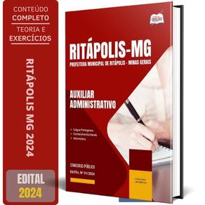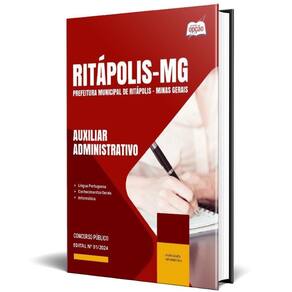 Apostila Prefeitura de Ritápolis - MG 2024 - Auxiliar Administrativo, Auxiliar de Biblioteca, Auxiliar de Secretaria Apostila para Prefeitura de Ritápolis - MG 2024 para o cargo de Auxiliar Administrativo, Auxiliar de Biblioteca, Auxiliar de Secretaria Escolar, Educador Social e Recepcionista