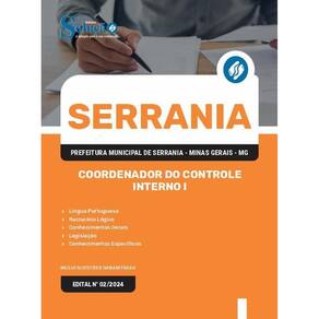 Apostila Prefeitura de Serrania MG 2024 - Coordenador do Controle Interno I Apostila para Prefeitura de Serrania - MG 2024 para o cargo de Coordenador do Controle Interno I