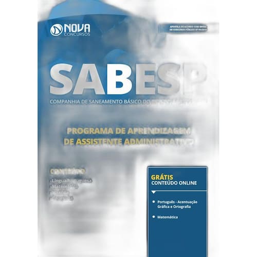 A Apostila SABESP 2019 Programa de Aprendizagem de Assistente Administrativo foi elaborada de acordo com o edital 01/2019, por professores especializados em cada matéria e com larga experiência em concursos.