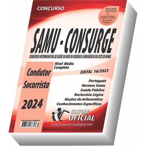 Cargo: condutor socorrista Tipo: impressa Páginas: 276 Escolaridade: nível médio / técnico Órgão: concurso público do consórcio intermunicipal de saúde da rede de urgência e emergência do leste de minas - consurge - samu - edital nº 16/2023