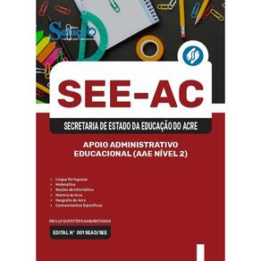 Apostila SEE AC 2024 - Apoio Administrativo Educacional AAE Nível 2 Apostila para SEE-AC 2024 para o cargo de Apoio Administrativo Educacional AAE Nível 2