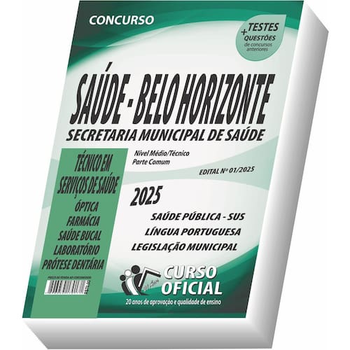 Edição impressa atualizada - elaborada por professores especializados em concursos públicos do curso oficial - são 25 anos de experiência e aprovação dedicados a você, . Cargos: técnico em serviços de saúde - técnico em óptica - técnico em farmácia - técnico de laboratório - técnico de saúde bucal - técnico em prótese dentária Tipo: impressa Páginas: 264 Escolaridade: nível médio/técnico Órgão: secretaria municipal de saúde de belo horizonte - edital 1/2025 Conteúdo do material: Sus-saúde pública Língua portuguesa Legislação municipal parte comum a todos os cargos Você receberá ainda: Testes, provas e questões de concursos anteriores; Atualizações, se houver alguma mudança no edital; Prova do último concurso; Edital do concurso. Marca: Não Informado