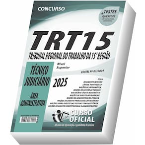Edição impressa atualizada - elaborada por professores especializados em concursos públicos do curso oficial - são 23 anos de experiência e aprovação dedicados a você, . Cargo: técnico judiciário - área administrativa Tipo: impressa Páginas: 582 Escolaridade: nível superior Órgão: tribunal regional do trabalho da 15 região - edital 1/2024 Conteúdo do material: Ética Regimento interno Língua portuguesa Noções de informática Raciocínio lógico-matemático Noções de gestão de pessoas Noções de direito do trabalho Noções de administração pública Noções de direito processual do trabalho Noções sobre direito das pessoas com deficiência Noções de direito constitucional e administrativo Você receberá ainda: Testes, provas e questões de concursos anteriores; Atualizações, se houver alguma mudança no edital; Prova do último concurso; Edital do concurso.