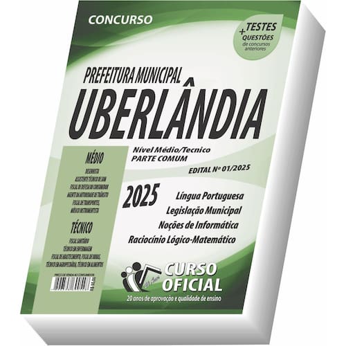 Edição impressa atualizada - elaborada por professores especializados em concursos públicos do curso oficial - são 25 anos de experiência e aprovação dedicados a você, . Cargos: médio - desenhista - assistente técnico de som - fiscal de defesa do consumidor - agente da autoridade de trânsito - fiscal de transportes, músico instrumentista - técnico - fiscal sanitário - técnico em enfermagem - fiscal de abastecimento, fiscal de obras, técnico em agropecuária, técnico em alimentos. Tipo: impressa Páginas: 206 Escolaridade: nível médio/técnico Órgão: prefeitura municipal de uberlândia - edital nº 01/2025 Conteúdo do material: Língua portuguesa Legislação municipal Noções de informática Raciocínio lógico-matemático parte comum a todos os cargos Você receberá ainda: Testes, provas e questões de concursos anteriores. Marca: Não Informado