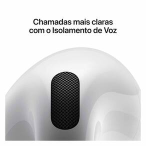 Um sonoro salto em capacidade. O poderoso chip H2 chega aos AirPods 4 para transformar completamente a qualidade do som e das chamadas. Com vários recursos inteligentes, os AirPods 4 se adaptam a praticamente qualquer ambiente, até mesmo quando você precisa de silêncio absoluto.