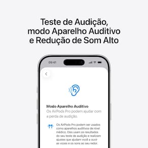 Teste de Audição e redução de som alto, ajustando-se ao seu perfil auditivo para mais clareza e conforto.