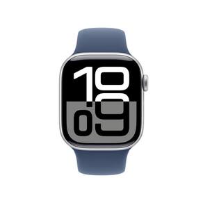 Apple Watch Series 10 GPS + Cellular, Caixa prateada de alumínio, Pulseira esportiva denim, Tamanho M/G, Processador S10 SiP com dois núcleos de 64 bits, Neural Engine de 4 núcleos, 64 GB de capacidade, Resistência à água de 50m, Resistência à poeira (IP6X), Compatível com iPhone XS ou posterior com iOS 18 ou posterior.Processador