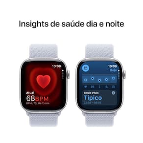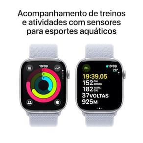 -Por que Apple Watch Series 10: Tela maior com até 30% mais área de visualização. Design mais fino, leve e confortável. Recursos avançados de saúde e boa forma oferecem insights valiosos. Recursos de segurança podem pedir socorro quando você precisar. Recarga mais rápida para 80% de bateria em cerca de 30 minutos; -Insights Avançados de Saúde: Faça um ECG a qualquer hora. Receba notificações de frequência cardíaca alta ou baixa e de ritmo cardíaco irregular. Entenda melhor seu ciclo menstrual e veja estimativas de ovulações anteriores. Consulte métricas de saúde noturnas, como frequência cardíaca e respiratória e muito mais com o app Sinais Vitais. Acompanhe seu sono; -Parceiro de Treinos Poderoso: Registre todos os seus movimentos com os círculos de Atividade, que podem ser personalizados para se adequar ao seu estilo de vida. Receba métricas avançadas para vários tipos de treinos com o app Exercício. Monitore a intensidade com a Carga de Exercício. Use sensores de profundidade e de temperatura da água para esportes aquáticos. Além de tudo isso, o Apple Watch vem com três meses de Apple Fitness+ grátis. -Conexão Celular: Envie mensagens, atenda ligações, ouça músicas e podcasts, use a Siri e veja suas notificações onde estiver. O Apple Watch Series 10 (GPS) usa seu iPhone ou Wi-Fi para manter você sempre em conexão; -Recursos de Segurança Inovadores: A Detecção de Acidente e a Detecção de Queda podem ligar para os serviços de resgate se você sofrer um acidente grave de carro ou uma queda brusca. Com o SOS de Emergência, você pode pedir socorro apenas pressionando um botão. E o recurso Chegou Bem notifica automaticamente uma pessoa próxima ou da família quando você chega ao seu destino; -Durabilidade Incrível: Com resistência a rachaduras, certificação IP6X de resistência à poeira e classificação de 50 metros de resistência à água; -Neutro em Carbono: Configure todo Apple Watch Series 10 com qualquer material ou cor para que seja neutro em carbono. Saiba mais sobre o compromisso da Apple com o meio ambiente em apple.com/br/2030; -Compatibilidade Total: O relógio funciona de forma integrada com seus outros aparelhos e serviços Apple. Desbloqueie seu Mac automaticamente. Veja a direção e a distância aproximada do iPhone perdido com a Busca Precisa (em modelos compatíveis). Faça pagamentos com o Apple Pay; -Fácil de Personalizar: Com pulseiras em diferentes estilos, materiais e cores, além de mostradores personalizáveis, é fácil combinar com seu humor ou com o momento; -Possui teclado virtual; -Bluetooth 5.3; -Possui recurso viva-voz; -Conectividade LTE e UMTS; -Idiomas: Alemão, árabe, catalão, chinês (simplificado, tradicional, tradicional de Hong Kong), coreano, croata, dinamarquês, eslovaco, espanhol (América Latina, Espanha, México), finlandês, francês (Canadá, França), grego, hebraico, hindi, holandês, húngaro, indonésio, inglês (Austrália, EUA, Reino Unido), italiano, japonês, malaio, norueguês, polonês, português (Brasil, Portugal), romeno, russo, sueco, tailandês, tcheco, turco, ucraniano, vietnamita.Sistema operacional