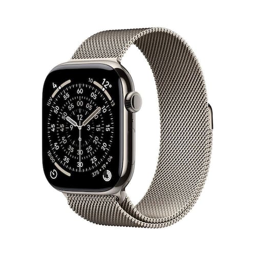 Apple Watch Series 11 GPS + Cellular - Caixa natural de titânio – 46 mm - Pulseira natural estilo milanês – P/M