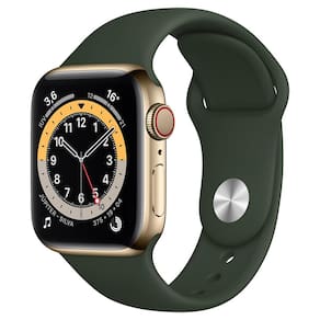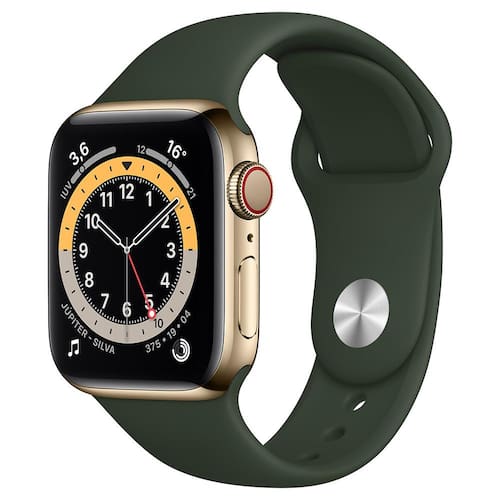Apple Watch Series 6 (GPS + Cellular) 40mm caixa dourada de aço inoxidável com pulseira esportiva verde chipre
