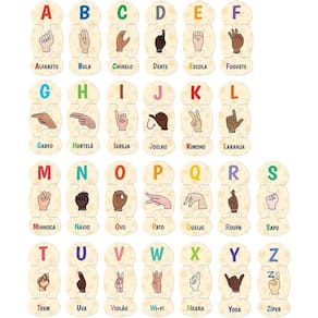 As crianças vão aprender a identificar e associar as letras do alfabeto em libras com palavras que se iniciam com elas ao montar esse divertido quebra-cabeça!
