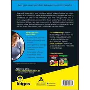Seja você universitário, seja estudante adulto, seja profissional em busca de educação continuada, parte de seu aprendizado — às vezes ele todo — acontecerá em uma sala de aula virtual. Este livro é seu guia fácil para as inúmeras possibilidades desse cenário, desde a escolha do curso certo e o domínio do software até o aprimoramento de habilidades de comunicação e estudo online. Independentemente do que busque em sua experiência de estudo, este é o seu roteiro para o sucesso educacional online! Abra este livro e descubra… • O curso certo para você • Como se preparar para as aulas • Como gerenciar o tempo • Como solicitar auxílio financeiro • Dicas sobre software • O hardware certo • Como usar “netiqueta” Abra este livro e descubra… • O curso certo para você • Como se preparar para as aulas • Como gerenciar o tempo • Como solicitar auxílio financeiro • Dicas sobre software • O hardware certo • Como usar “netiqueta”