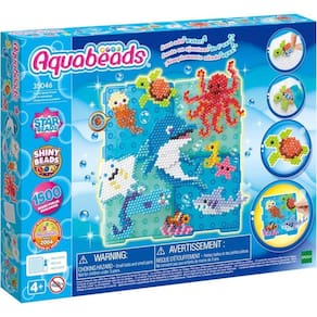 O conjunto Ocean Splash Scene inclui mais de 1500 miçangas lisas, de joias, polígono e estrela em 29 cores, bandeja de layout, pulverizador, tela para criações, pinos de design, folha de modelo e instruções. Borrife suas criações com água e veja os beads se colarem magicamente Seguindo a folha de modelo, coloque as miçangas na bandeja para criar seu design. As miçangas brilhantes incluídas neste kit são perfeitas para adicionar toques brilhantes e reluzentes às suas criações Aquabeads