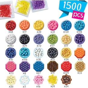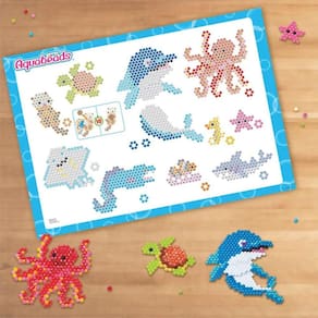 O conjunto Ocean Splash Scene inclui mais de 1500 miçangas lisas, de joias, polígono e estrela em 29 cores, bandeja de layout, pulverizador, tela para criações, pinos de design, folha de modelo e instruções. Borrife suas criações com água e veja os beads se colarem magicamente Seguindo a folha de modelo, coloque as miçangas na bandeja para criar seu design. As miçangas brilhantes incluídas neste kit são perfeitas para adicionar toques brilhantes e reluzentes às suas criações Aquabeads