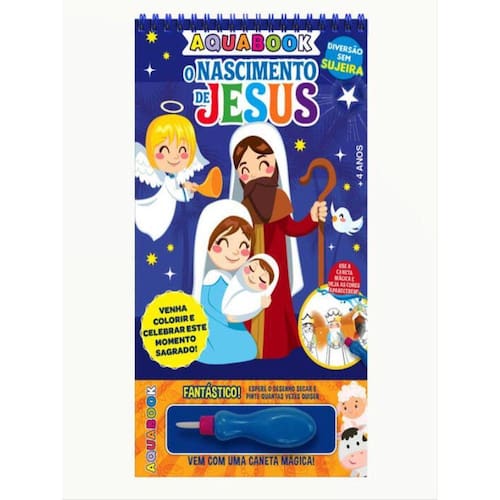 O Aqua Book Nascimento de Jesus com Caneta Mágica é o livro de atividades perfeito para ensinar às crianças sobre o nascimento de Jesus de uma maneira divertida e interativa. Basta colocar água na caneta e ver as cores aparecerem magicamente, tornando a atividade ainda mais envolvente.