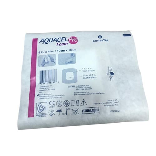 Aquacel Foam Pro 10x10cm - Convatec Contém 1 unidade do Curativo Aquacel Foam Pro é um curativo estéril, de espuma e tecnologia Hydrofiber tm . Para feridas Indicações: O curativo aquacel Foam Pro pode ser utilizado em: - Abrasões - Lacerações - Cortes mínimos Contraindicações: O curativo Aquacel Foam Pro não deve ser em indivíduos que sejam sensíveis ou que tenham apresentado uma reação alérgica ao curativo ou a seus componentes Marca: Não Informado