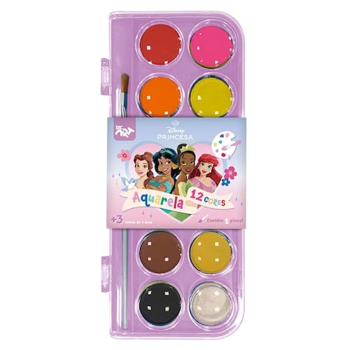 Aquarela Disney Princesas - 12 Cores A magia das princesas da Disney se combina com a criatividade das crianças na Aquarela Disney Princesa! Este incrível conjunto contém 12 cores vibrantes que vão en Marca: Não Informado
