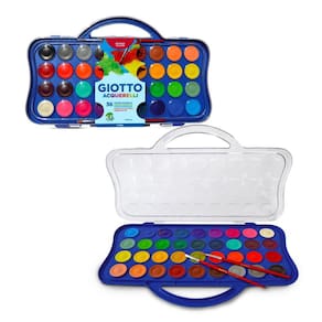Aquarela em Pastilha Giotto Intense Colors com 36 Cores A Aquarela em Pastilha da Giotto tem um design que evita o vazamento da água. As pastilhas tem uma gama de cores ricas, brilhantes e com alta capacidade de cobertura, além da fácil diluição criando efeito de aquarela translúcido. - Marca: Giotto - Watercolors- Contém 36 cores- Tampa Godê- Alça para transporte- Pincéis com cerdas sintéticas- 01 Pincel redondo n.3- 01 Pincel chato n.2- Pastilhas com 30mm de diâmetro - Fácil de usar - Alta qualidade- Cores intensas- Fabricado na Itália - Referência: 353600- Segurança: INMETRO e INNAC- Composição: Goma Arábica, Cargas e Pigmentos - Dimensões (L x A x P): 21,5 x 1,5 x 34,8 cm