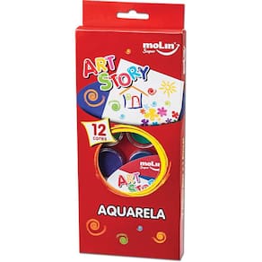 Estojo com pastilhas, solúveis em água, para criar magníficos efeitos.? Grande durabilidade.? Cores vivas.? Ótima transferência de cor para o papel? Estojo plástico resistente, com 12 cores e 1 pincel.*Pincel de alta qualidade, com cabo de madeira e cerdas de super macias.