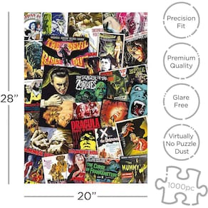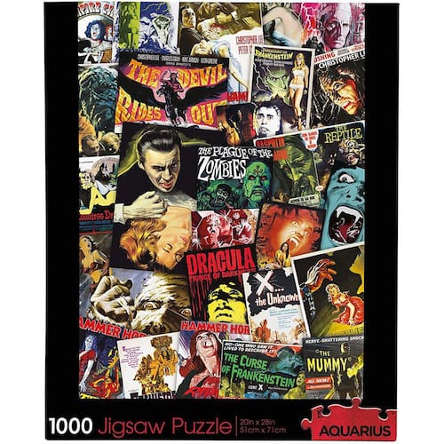 1000 PEÇA JIGSAW PUZZLE: Peça juntos o choque e horror estressante desta colagem de pôsteres clássicos de hammer house of horror. Traga sua criação à vida enquanto monta este quebra-cabeça de 1000 peças! O quebra-cabeça completo mede 20x28. PROCURANDO PRESENTES DE TERROR? Este quebra-cabeça hammer é o melhor presente de Horror para os fãs de Horror. Perfeito para a família intrigante, noite de jogos, aniversários e feriados. QUALIDADE PREMIUM VOCÊ PODE CONFIAR: Nossa técnica de corte de precisão garante um ajuste perfeito de todas as peças do quebra-cabeça, deixando praticamente nenhuma poeira de quebra-cabeça para trás. Usamos papel de qualidade grossa que é livre de brilho para que você possa mostrar sua obra-prima com orgulho. 100% OFICIALMENTE LICENCIADO HAMMER MERCHANDISE: Todos os nossos Quebra-Cabeças de Horror são projetados pela AQUARIUS e são oficialmente autorizados. Eles são a peça perfeita de memorabilia colecionável horror para adicionar à sua coleção. A PROMESSA DE AQUÁRIO: É simples. Apoiamos 100% nossos produtos e se você não estiver completamente satisfeito com sua compra, ofereceremos um reembolso total! Clique no botão amarelo "Adicionar ao Carrinho" hoje e compre com confiança. Jogos de AQUÁRIO, quebra-cabeças e cartas de baralho são um reflexo dos favoritos de hoje e um aceno ao passado e são projetados para entreter jovens e velhos.