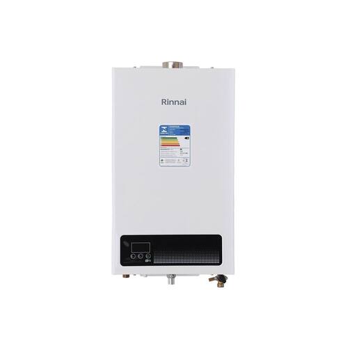 Aquecedor de Água a Gás Digital REU-E150 FEH (E15) 15 litros GN Branco de Exaustão Forçada (Tipo B22) com diâmetro de chaminé Ø 60 mm e alimentação Bivolt (Automático). Com sistemas de segurança integrados, exaustão forçada e controle digital de temperatura, o aquecedor a gás digital de 15 litros oferece a qualidade, segurança e o conforto que você precisa. Acendimento Automático: Sim Acompanha Manual de Instruções: Sim Altura: 59 cm Ambiente Principal: Área de Serviço Capacidade: 15 l Certificado: Inmetro Classificação PBE: A Consumo Máximo de Gás Natural: 2,2 m³/hora Contato Assistência: 0800 70 70 279 / (0XX11) 5079-8477 Cor: Branco Cor do Produto: Branco Cor Predominante: Branco Desligamento Automático: Sim Eficiência Energética: Classe A Itens Inclusos: Acompanha o produto: Manual de instruções, certificado de garantia, parafusos e buchas Largura: 35 cm Luz indicadora de Funcionamento: Sim Manual de Montagem e Instalação: https://product-hub-prd.madeiramadeira.com.br/925132/documents/7853d3c2-6bb0-41be-a214-1f0d6df7358c2161222201.pdf Marca: Rinnai Material Principal: Aço Carbono Origem do Produto: Importado Peso: 9,5 kg Possui Certificado: Sim Potência: 22 W Profundidade: 14,5 cm