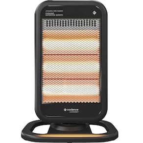 Aquecedor halógeno com 3 níveis de aquecimento, função oscilar, proteção contra superaquecimento e quedas, e design moderno com haletas luminosas. Não resseca o ar nem queima oxigênio.Tipo