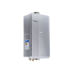 O Aquecedor a Gás Rinnai Linha Digital REU-E351 FEA (E35) 35 litros GLP Prata de Exaustão Forçada (Tipo B23) com diâmetro de chaminé Ø 80 mm e alimentação Bivolt (Chave HH). Com o controle de temperatura preciso e sistemas de segurança integrados