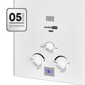 Projetado para operar mesmo em locais com baixa pressão de água, o aquecedor garante desempenho constante. Seu controle de vazão de gás e água permite ajustes personalizados para um uso sustentável. A segurança é reforçada por um sistema robusto com proteção contra falha de acendimento, superaquecimento e interrupção automática do gás em caso de baixa pressão. O temporizador de 20 minutos desliga o aparelho automaticamente para maior segurança.