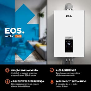 O Aquecedor de Água a Gás EOS Digital 16 Litros é um modelo moderno, eficiente e seguro, ideal para quem busca conforto e praticidade no aquecimento de água. Compatível com redes elétricas 127V e 220V, adapta-se a qualquer residência. Sua função inverno e verão ajusta o consumo de gás conforme a estação, garantindo economia e conforto térmico.