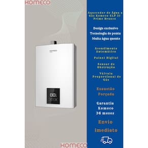 1 Aquecedor de Água a Gás Komeco GLP 21 Litros Prime - Branco