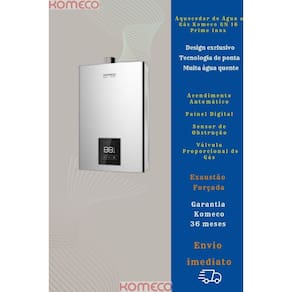 Aquecedor de Água a Gás Komeco GN 16 Litros Prime - Inox