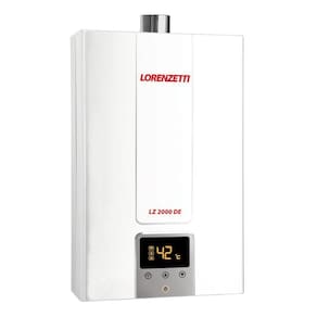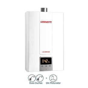 Aquecedor De água A Gás Lz 2000de Digital Lorenzetti Gn (gás Natural) Display TouchCom um simples toque no display você controla todas as funções do seu aquecedor.Controle Eletrônico Digital Através de sensores de temperatura e fluxo de água, a unidade de comando eletrônico gerencia e monitora as informações garantindo sempre a temperatura selecionada.Modulação Automática da Chama A temperatura da água se mantém estável mesmo havendo abertura de mais um ponto de consumo durante o funcionamento do seu aquecedor.Acendimento AutomáticoO aquecedor liga ao se abrir o registro de água.Sistemas de Segurança- Sem Chama PilotoSeguro e econômico, a chama fica acesa somente no momento de sua utilização.- Sensor de ChamaCorta o gás em caso de ausência de chama - evita vazamentos.- Termostato de SegurançaEm caso de superaquecimento, o Aquecedor é desligado automaticamente. Características do produto: - Marca: Lorenzetti- Garantia: 3 anos junto ao fabricante - Consumo de Gás: 2,34 kg/h - Diâmetro da Chaminé (mm): 80 - Modelo: Digital - Pontos de Uso: 3 Pontos - Potência Nominal (Kcal/min): 462 - Tipo de Exaustão: Forçada - Vazão de Água: 20 L/min Acompanha o produto: - 1 Aquecedor de Água a Gás 1 Manual de Instalação