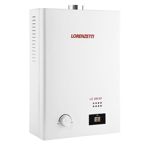 O Aquecedor de Água a Gás Natural Lorenzetti LZ200EF possui vazão de 20 litros por minuto, sendo ideal para uso em até 2 duchas + 1 misturador.