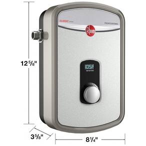 O aquecedor de água tankless elétrico Rheem RTEX-11 de 11kW fornece água quente sob demanda para uso em pontos específicos, como pias, chuveiros ou eletrodomésticos, com fluxo máximo de 2,68 GPM. Projetado para instalação em parede, ele ativa o aquecimento apenas quando necessário, com controle de potência modulante e display digital ajustável via dial.