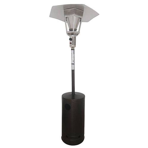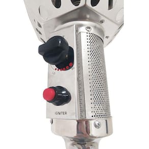 No patio heater há um chapéu refletor de calor, que é responsável por espalhar o aquecimento, os queimadores, a mangueira e o registro para o gás, e uma proteção para evitar a exposição do botijão.