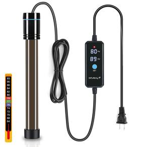 Orlushy Aquecedor submersível de aquário de 200 W, aquecedor de aquário ajustável com controle externo de exibição digital, proteção contra superaquecimento e termômetro para tanque de água doce e salgada de 50 a 100 litros - Orlushy Aquecedor de aquário de 200 W: o aquecedor Orlushy de 200 W pode funcionar perfeitamente em tanques de 20 a 40 galões, adequado para aquários, aquários, tanques betta e tanques de tartaruga. O comprimento deste aquecedor é de 19 cm, que é mais compacto em tamanho do que o aquecedor autêntico, ocupando menos espaço e pode ser facilmente escondido no aquário. - Vidro de quartzo mais seguro e durável: este aquecedor de aquário é feito de vidro de quartzo cinza, que tem maior dureza do que o vidro de quartzo comum, mais resistente a altas temperaturas e à prova de explosão. Este material torna o aquecedor mais seguro e durável para ser utilizado em água doce e salgada, maior vida útil é fornecida. - Aquecimento rápido de água e sensor de água preciso: com fio de níquel-cromo premium enrolado uniformemente, o calor pode se dissipar rapidamente para uma área mais ampla na água, aquecimento de água mais eficiente. O sistema exclusivo de detecção de temperatura da água pode corrigir com precisão a temperatura da água em tempo real no valor definido, protegendo suas vidas aquáticas das flutuações da temperatura da água. Quando a temperatura da água exceder 35 °C, o aquecedor cortará automaticamente a energia e o código de erro "EE" será mostrado, eliminando o risco de "ferver peixe". - Controlador externo com display digital LED: o controle externo reduz o risco de entrada de água e queima o aquecedor, melhorando muito a segurança. O controle remoto permite que você ajuste o aquecedor sem ser feito na água e molhar à mão. A temperatura é ajustável variando de 18.3 °C a 33.9 °C, e o valor definido muda -17.2 °C por prensa. Além disso, você também pode observar a temperatura da água em tempo real no visor digital a qualquer momento. - Termômetro e garantia de 180 dias: Este aquecedor de aquário vem com um termômetro de tira livre para melhor calibrador de temperatura, bem como garantia de 180 dias de que a substituição do aquecedor é fornecida se ocorrer algum problema. Se você tiver algum problema com o aquecedor, sinta-se à vontade para entrar em contato conosco. Fornecemos um serviço pós-venda oportuno.