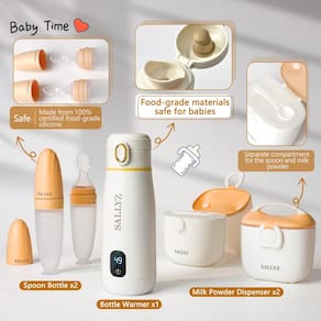 A Sallyz é uma marca confiável e experiente, focada em fornecer aos pais em todo o mundo soluções inovadoras e seguras de cuidados infantis, destinadas a facilitar suas vidas, sem comprometer a segurança ou o conforto do bebê. Garantimos o emprego de tecnologias mais recentes, materiais premium e fornecedores cuidadosamente avaliados, a fim de atender às rigorosas expectativas de qualidade de nossos clientes. Está enfrentando um problema com um de nossos produtos? Conte-nos tudo sobre isso e nossa simpática equipe de atendimento ao cliente resolverá rapidamente a situação! Pacote de aquecedor de mamadeiras portátil com colheres de alimentação e recipientes para leite — o companheiro perfeito para pais modernos em trânsito! O aquecedor portátil de mamadeiras Nomad combina perfeitamente a facilidade de uso com a funcionalidade, permitindo que seu filho desfrute de sua fórmula na temperatura perfeita para beber, não importa aonde o dia o leve! Com uma bateria totalmente recarregável de grande capacidade, design compacto, elegante e portátil, além de uma função de controle de temperatura e volume ideal, este aquecedor de leite portátil para bebês se tornará seu aliado de viagem número 1, evitando experiências confusas e economizando seu valioso tempo. Não está totalmente convencido? Aqui estão algumas das incríveis características desses suprimentos para alimentação com mamadeira: 1. O pacote inclui: aquecedor de biberões, colheres de alimentação, recipientes para leite; 2. Clipe de bloqueio infantil atualizado; 3. Boca de garrafa inclinada e fácil de despejar; 4. Plástico ABS resistente ao calor; 5. Materiais de qualidade alimentar seguros para bebês; 6. A tela LCD mostra a temperatura do leite; 7. Impermeável e fácil de limpar; 8. Bateria de 10500mAh com várias opções de carregamento, carregador magnético; 9. Design portátil e ergonômico; 10. Ideia de presente perfeita para chá de bebê, novas mamães, presentes para registro de bebês. Certifique-se de estar sempre preparado para cuidar das necessidades do seu filho com este aquecedor de mamadeiras premium! - Imprescindível para pais modernos: Procurando uma maneira conveniente e segura de manter sua fórmula na temperatura perfeita para servir enquanto estiver em trânsito? Você gostaria de garantir que seu filho desfrute de uma refeição nutritiva, não importa aonde o dia o leve? Os itens essenciais para alimentação infantil Sallyz Nomad são a solução perfeita! - Kit completo de alimentação para bebês: nossos suprimentos para alimentação com mamadeira incluem tudo o que você precisa para uma experiência completa, altamente gratificante e fácil de usar! Você receberá: 1 aquecedor de mamadeiras portátil sem fio, 2 colheres de alimentação e 2 recipientes para leite, perfeitos para suas necessidades diárias! - Sem fio e portátil: diga adeus aos cabos de carregamento impraticáveis e aos designs pesados! Este aquecedor de leite portátil para bebês é compacto, leve e fácil de transportar, apresentando um design sem fio sem comprometer a autonomia. - Controle de temperatura e bateria superior: ao contrário de produtos similares no mercado, este aquecedor de mamadeiras portátil possui um design inovador com controle de temperatura na faixa de 37-55°C, enquanto o display LED mostra a temperatura do leite em todos os momentos. A bateria recarregável de 10500mAh oferece autonomia durante todo o dia, enquanto a capacidade de 350ml é ideal para alimentação durante todo o dia! - Presente maravilhoso para chá de bebê: peça o aquecedor de mamadeiras Nomad portátil para você ou como uma linda ideia de presente para uma futura mamãe, e tenha certeza de que ela vai gostar! Uma excelente opção para presentes de chá de bebê, itens essenciais para o registro do bebê, itens essenciais para mamãe pela primeira vez, itens essenciais para bebês recém-nascidos