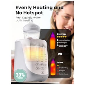 Diga adeus ao antigo aquecedor de mamadeira que nunca atinge a temperatura certa. Apresentamos o aquecedor de mamadeira patenteado GROWNSY, que eleva automaticamente a mamadeira após o aquecimento, garantindo sempre a temperatura ideal e eliminando as suposições. Aquece 120ml de leite em 25 minutos, preservando os nutrientes com tecnologia suave de banho-maria que evita o superaquecimento, favorecendo a digestão e crescimento do seu bebê. Possui função de manter aquecido por 24 horas, perfeito para alimentações noturnas e conforto imediato do bebê. Aquecimento Rápido, Descongelamento Suave, Manter Aquecido por 24 horas, Vaporização, Aquecimento de Alimentos, Elevação Inteligente, Temporizador, Luz Noturna, Cesto Antiescaldo e Função de Memória. Compatível com todas as marcas de mamadeiras e capaz de aquecer todos os tipos de alimentos para bebês. Inicie em apenas três passos e conclua o processo de aquecimento do leite em 35 minutos através de um aquecimento em banho-maria. A função de memória simplifica o início, reduzindo a operação de três etapas para um único botão. O aquecedor de mamadeira GROWNSY foi escolhido por mais de 9 milhões de pais. Com nossa missão de cuidar e nutrir cada etapa do crescimento, continuamos a apoiar mais famílias. Também é um ótimo presente de chá de bebê para novas mães entre parentes, amigos e vizinhos.