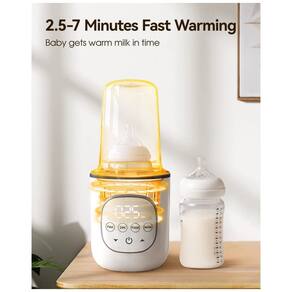 Aquecedor multifuncional 8 em 1: Aquecedor completo, incluindo aquecimento rápido em 2,5 7 minutos, sistema de termostato 24H para manter o leite materno aquecido, descongelamento suave do leite materno congelado, aquecimento de alimentos, limpeza profunda de mamadeiras e bicos com Vapor, função de memória, temporizador e configuração de temperatura.