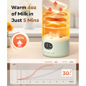- Controle e exibição precisos: você pode controlar com precisão a temperatura da água/leite em todos os graus. O aquecedor de mamadeira portátil também exibe a temperatura atual da água/leite por meio de um LED. Muito fácil de usar e alcança a temperatura desejada.