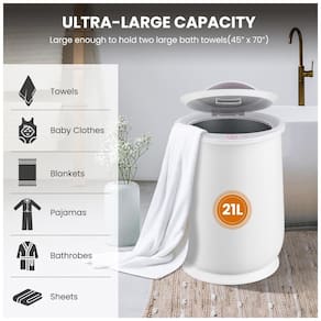 Versátil com grande capacidadeMede 333348 centímetros com grande capacidade de 21L para toda a família, o aquecedor de toalhas WELLHUT acomoda facilmente duas toalhas de banho grandes de 101,6x177,8 centímetros, roupões de banho, cobertores, pijamas, roupas íntimas, meias e muitos outros. Perfeito para casa, spa, casa de piscina, salão, hotel, etc.